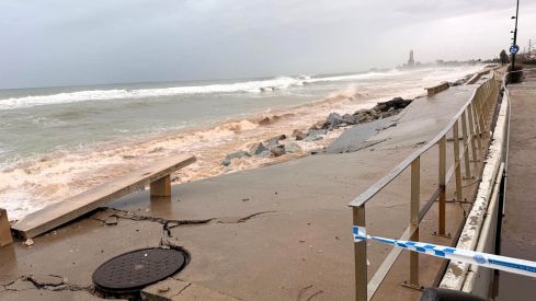 El temporal provocat per la borrasca mediterrània Harry està deixant greus desperfectes a la part nord del passeig Marítim de Badalona. L’impacte intens del mar ha erosionat els fonaments i ha aixecat el paviment en el tram adjacent a la platja de la Barca María, situat entre els barris de Canyadó i Manresà, deixant intransitable aquest recorregut que connecta Badalona amb Montgat.
