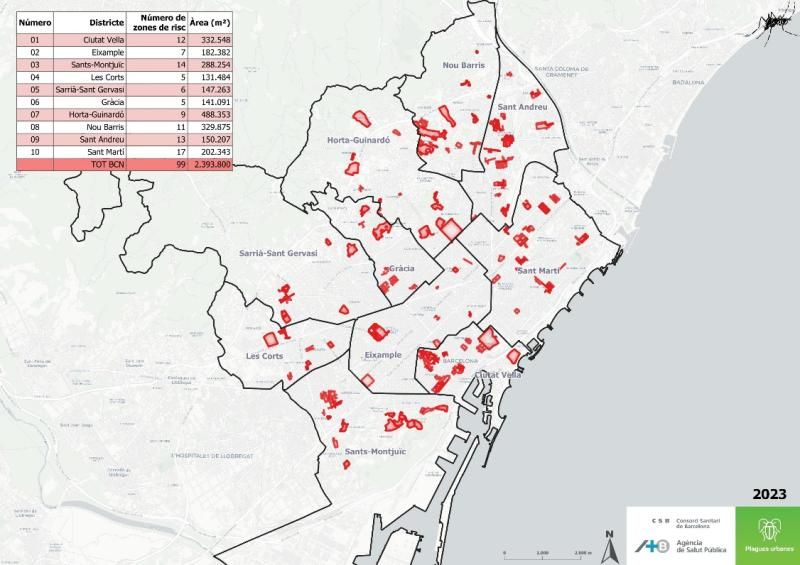 La recollida sistemàtica de dades del Servei de Vigilància i Control de Plagues Urbanes (SVIPLA) de l’ASPB, tenint en compte diversos aspectes com l’activitat registrada durant l’any anterior, els entorns de zones de risc epidemiològic (hospitals, clíniques, centres del viatger, etc.), i les desigualtats socials en salut, determina les zones on s’intensifiquen les tasques de prevenció en el marc del Programa de vigilància i control de mosquits. Enguany, s’han seleccionat 100 zones per dur a terme aquestes tasques.