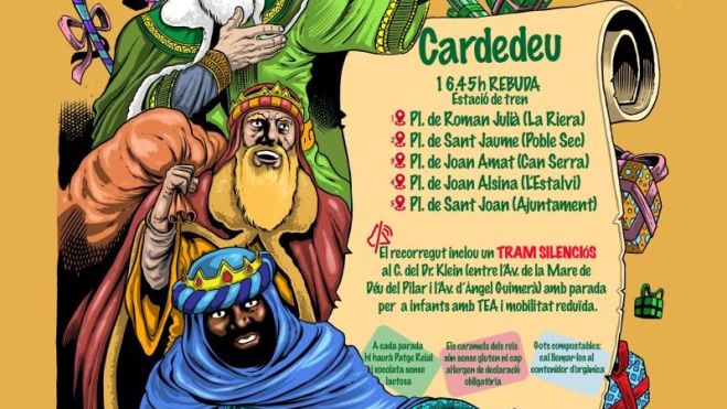 - Per a famílies amb infants amb TEA o amb capacitats diverses: En cas de suspensió de la Cavalcada, la rebuda prevista a la Biblioteca es realitzaria a la Sala Sarau abans d'anar al Teatre.