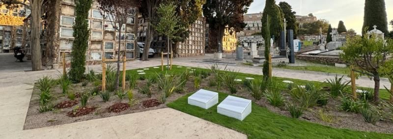 Aquests nous espais, anteriorment ocupats per blocs de nínxols o tombes tradicionals, s’han adequat creant una àmplia zona verda que permet la vinculació de l’urna cinerària amb arbres i plantes, un entorn natural que convida al recolliment i a la reflexió. Segons la voluntat de les famílies, es podrà optar per diferents tipologies de sepultura per a inhumació de cendres, com són els columbaris o les tombes cineràries, per exemple.