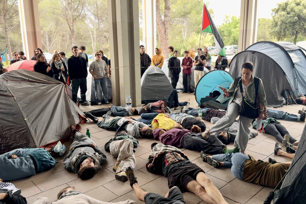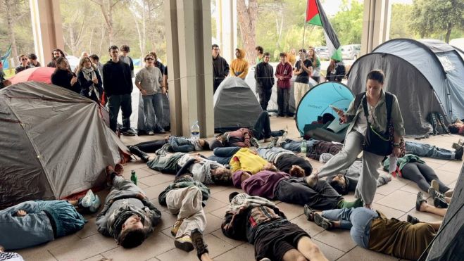 Un centenar d'estudiants ha passat la primera nit acampat al voltant del Claustre de la Universitat Autònoma de Barcelona (UAB) per reclamar al centre que trenqui tots els vincles amb Israel. El col·lectiu ha matinat i ha organitzat un acte de protesta coincidint amb la celebració del Claustre, estirant-se davant de l'accés a l'edifici per no impedir-hi l'accés, però sí fer visible la protesta i reclamar que es compleixin els acords presos el maig de 2024 per desvincular-se de qualsevol mena de relació amb Israel. Fonts de la UAB han detallat que han avançat per fer efectius els acords i, entre altres, acollir alumnes procedents de Palestina, però admeten que no se n'ha fet publicitat de les accions dutes a terme.