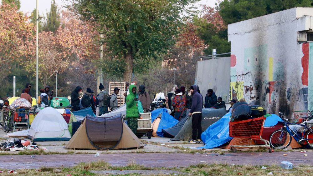 Un centenar aproximat de persones amb una dotzena de tendes de campanya resten concentrats davant de l'antic institut B9 de Badalona (Barcelonès) aquest dijous al matí, després que ahir els Mossos d'Esquadra desallotgessin l'assentament a l'antic edifici escolar ocupat.