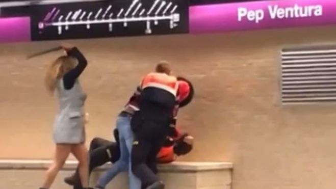 Els fets van passar diumenge a les 8.15 hores a l'estació de Pep Ventura de la L2, a Badalona. Com es pot veure en un vídeo, els vigilants intenten retenir l'acompanyant de la dona, moment que aquesta aprofita per agafar la porra d'un d'ells i colpejar-los reiteradament.