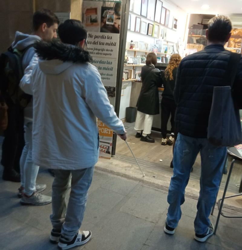 Després, els i les estudiants analitzen els comerços i fan visites amb cadira de rodes, bastons i antifaços per viure en primera persona les dificultats quotidianes d’accessibilitat física i comunicativa en entorns reals de comerços en funcionament. El projecte acaba amb el treball acadèmic individualment o en grups i el retorn de les conclusions i propostes de millora als comerços i equipaments.