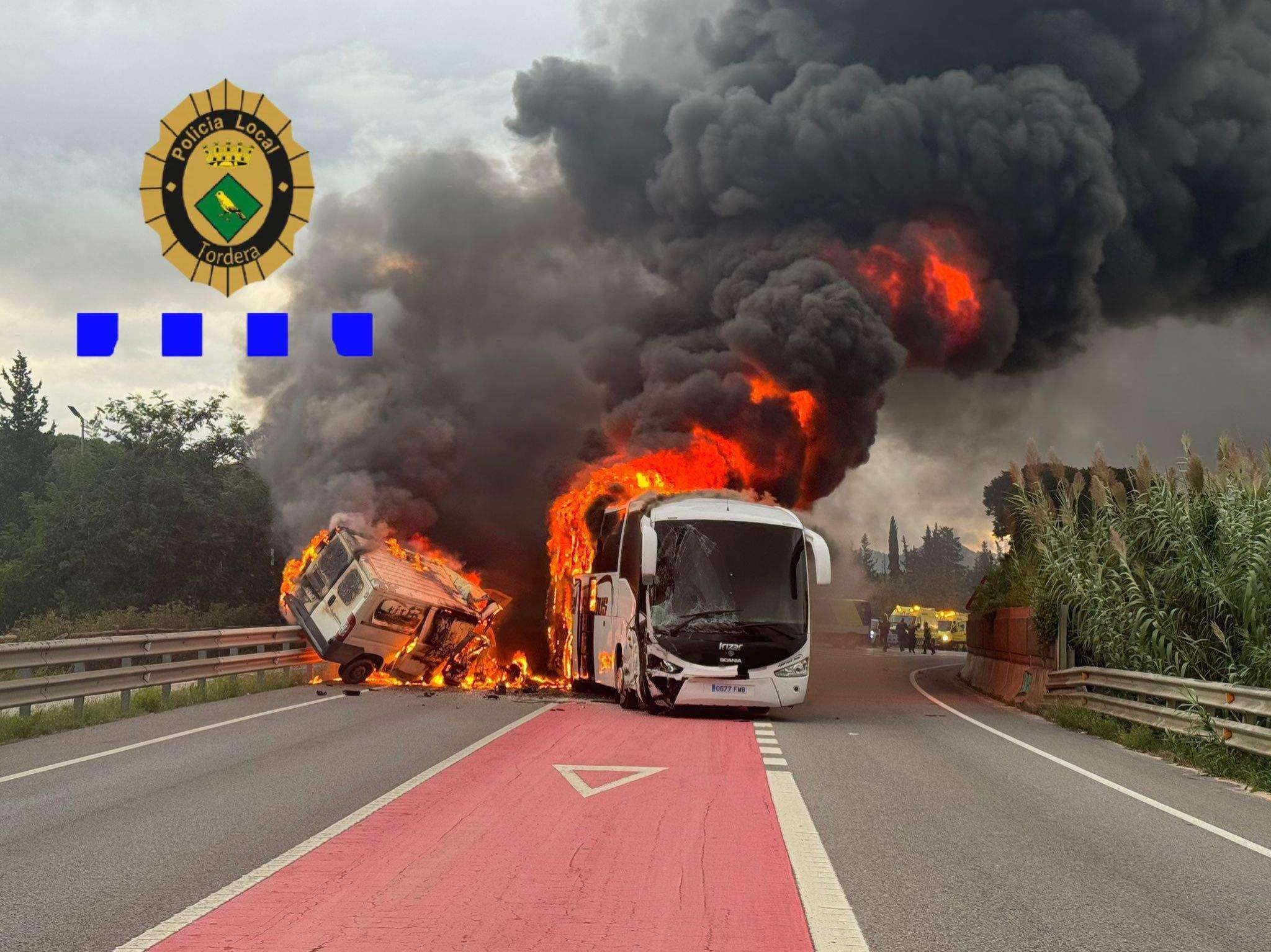 Aquest dissabte al matí s'ha produït un greu accident al terme municipal de Tordera que ha involucrat una furgoneta i un autobús. El conductor de la furgoneta, que superava la taxa d'alcohol permesa i no disposava de permís de conduir perquè el tenia suspès, s'ha encastat contra l'autobús a la carretera GI-600, al quilòmetre 2,9, provocant un incendi que ha cremat ambdós vehicles.