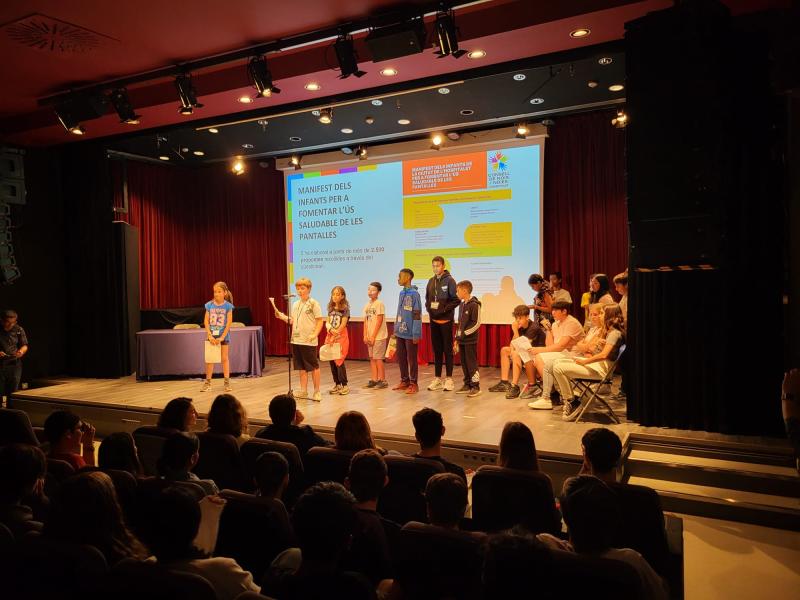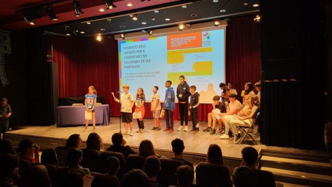 El Consell de Nois i Noies de primària i secundària de L’Hospitalet ha tancat aquest migdia el curs amb un ple a l’Auditori Barradas. Abans de la sessió, els nois i noies de primària han fet el Tecnofòrum, I Fòrum d’Infants de la Ciutat al Voltant de les Tecnologies, les Xarxes i les Pantalles. Al llarg del curs, els integrants han abordat el tema en diferents sessions i han fet una enquesta a 2.500 infants de la ciutat. A partir d’aquest treball, han elaborat el Manifest dels infants de L’Hospitalet per fomentar l’ús saludable de les pantalles.