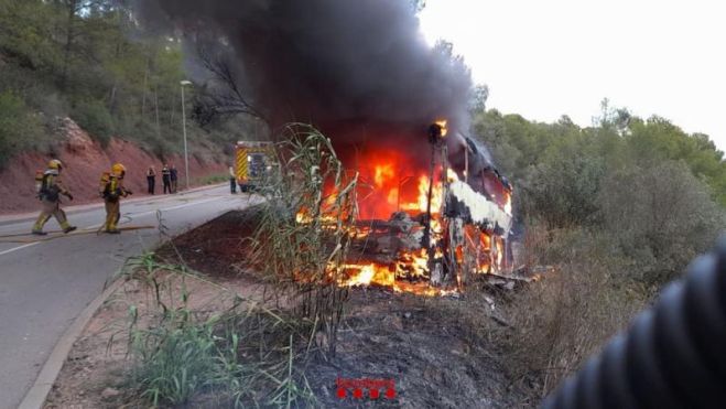 Fins al lloc dels fets s'hi han desplaçat cinc dotacions de Bombers, que han extingit les flames de l'autobús, evitant així que el foc es propagués a la vegetació boscana dels voltants. No hi ha persones afectades pel fum o les flames.