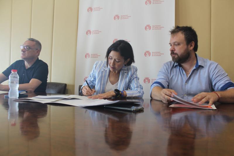 L’alcaldessa de Santa Coloma de Gramenet i presidenta del grup municipal socialista, Núria Parlon, i el portaveu d’aquest grup, Esteve Serrano, d’una banda; i el president del grup municipal de Ciutadans, Dimas Gragera, i el portaveu del seu grup, Salvador Tovar, han signat aquest matí a la Sala de Govern del consistori un acord de governabilitat basat en cinc eixos. Amb la incorporació dels dos regidors taronges l’equip de govern s’amplia als 19 regidors i regidores.