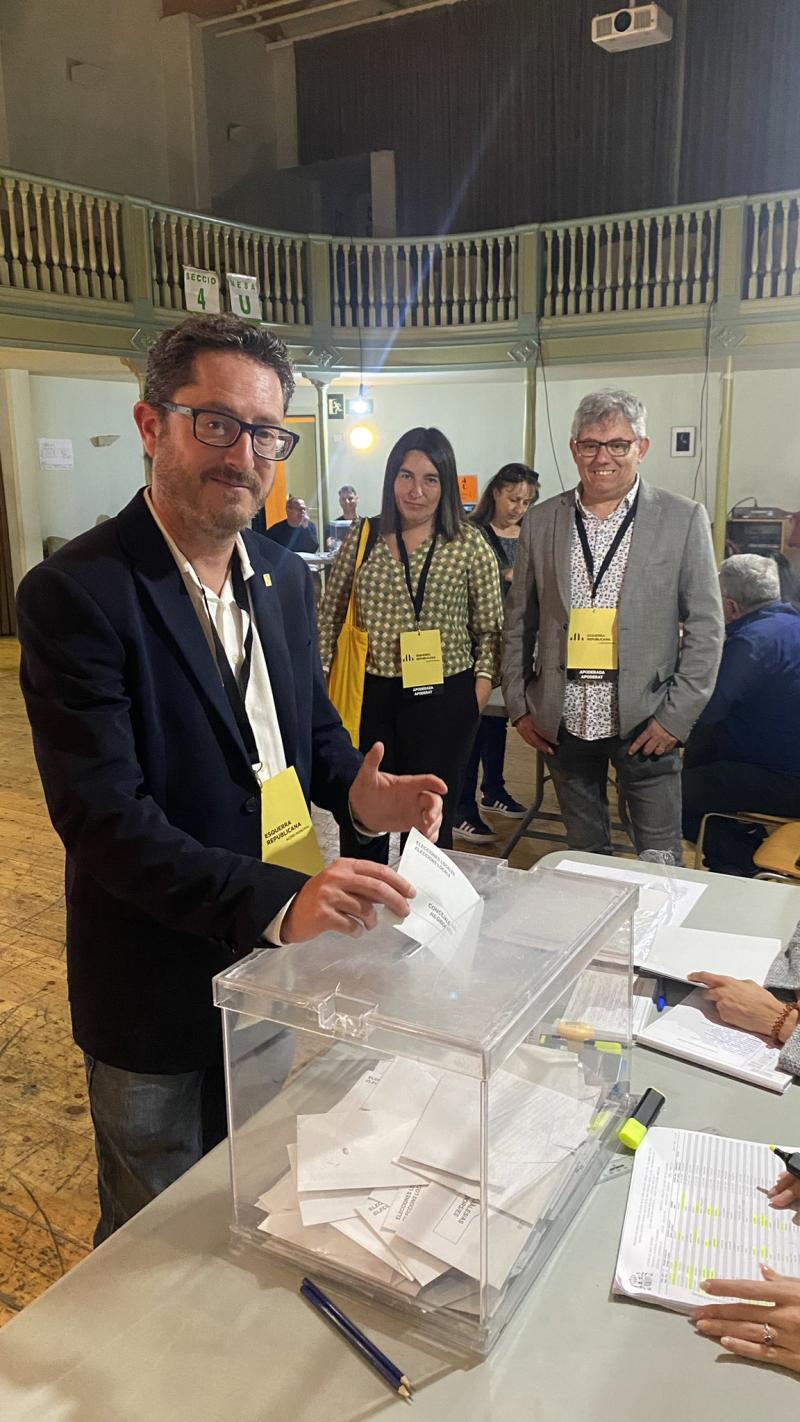 10:46 h - Seguint a l'Hospitalet, el candidat d'ERC, Jaume Graells, ha votat acompanyat de la presidenta Anna Simó i la número 2 de la llista, Sílvia Casola.