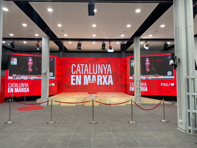 Fotògraf: Adrià Tur20:37 - A la seu del PSC a Barcelona, de moment, es respira tranquil·litat malgrat que el sondeig de la FORTA i GAD3 donen a Collboni un frec a frec amb Ada Colau.