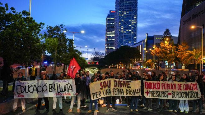 Un centenar de persones han tallat aquest dilluns al matí la Ronda Litoral de Barcelona en el marc de la vaga educativa convocada pels sindicats per reclamar millores laborals i salarials. L’acció s’ha produït a l’altura del Campus Universitari Mar.