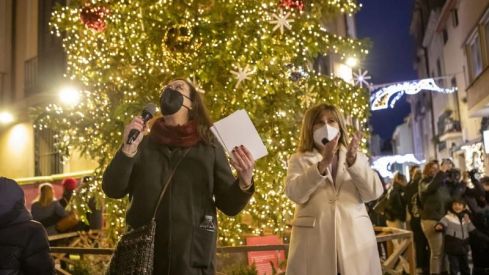 La tinenta d’alcalde de Promoció Econòmica i Projecció de la Ciutat, Núria Marín; la regidora de Comerços i Mercats, Jennifer Ramírez; la regidora de Cultura, Rosa Boladeras; portaveus dels Grups Municipals i membres de la Corporació Local; han assistit aquesta tarda a l’acte d’encesa de llums de Nadal i, posteriorment, han visitat el pessebre oficial instal·lat a la plaça Vella i elaborat per l'Agrupació de Pessebristes de Terrassa.