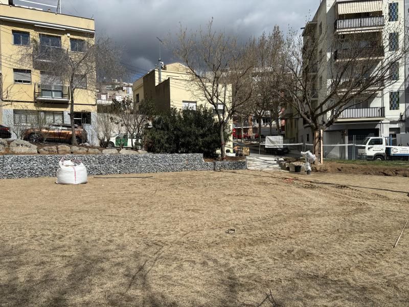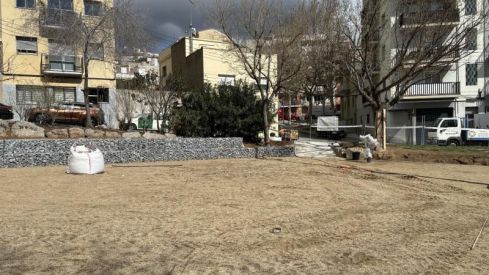 Una altra plataforma, on s'ubicarà l'Espai de Salut. Font: Pablo DomènechFinalment, les obres del parc també estan servint per soterrar part de la instal·lació elèctrica, amb l'objectiu de retirar alguns dels pals que estaven al voltant del parc. Les obres es van adjudicar a l’empresa Construcciones Fertres SL per un pressupost de 349.357,25 €. S'espera que abans de Sant Jordi estiguin finalitzades; queda pendent també el reg i la jardineria.