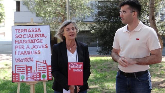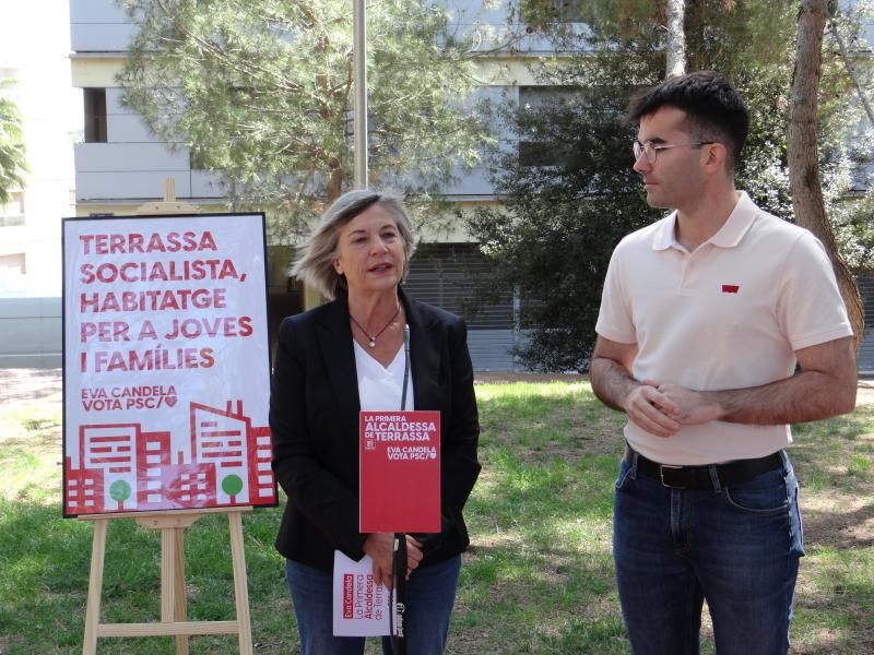 El PSC Terrassa vol garantir l'accés a l'habitatge a les noves generacions. Així ho ha expressat l'alcaldable socialista Eva Candela juntament amb el número dos de la llista, Adrián Sánchez.