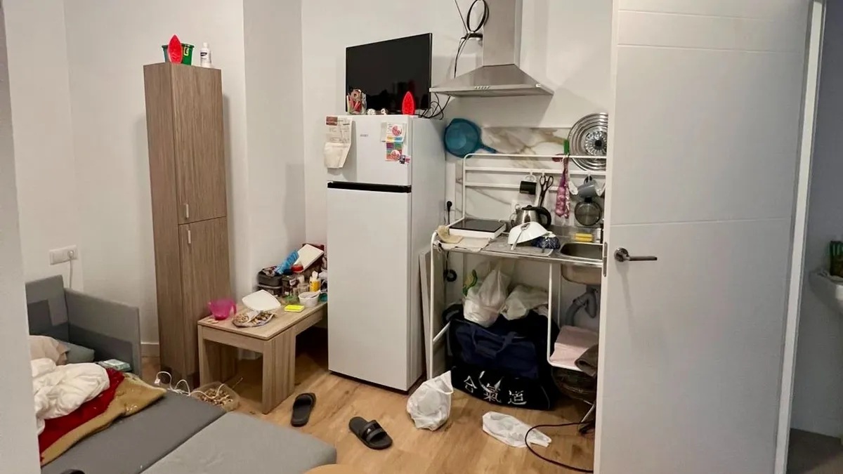 Els habitatges il·legals, ubicats en un antic taller de fusteria, estaven dividits en habitacions de 15 metres quadrats sense ventilació, amb problemes elèctrics i d’estabilitat. Dels 18 espais, 16 estaven llogats per 450 € mensuals, fet que permetia a l’empresari ingressar uns 7.200 € al mes —equivalent a 30 € per metre quadrat— per allotjar famílies vulnerables.
