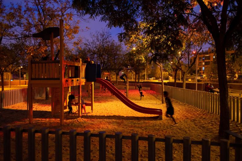 La novetat tecnològica més puntera és el canvi de l’espectre d’emissió de les lluminàries, que pretén potenciar l’ús públic del parc i respectar el cicle biològic de les espècies i de les persones. Quan no hi ha ningú, la llum és d’un color ataronjat accentuat, fet que redueix l’afectació sobre la biodiversitat. Quan passa una persona o el sensor detecta moviment o ocupació, la llum ataronjada passa a ser blanca, de manera que reprodueix millor dels colors, però sempre dins d’un rang d’impacte mínim sobre el rellotge circadiari. Aquesta lluminositat té dos beneficis importants: minimitza els efectes lumínics sobre el cicle immunològic a través dels receptors de la retina i millora la percepció a l’espai públic només quan és necessari. També té un impacte positiu en la percepció de seguretat de les persones, ja que sovint es relaciona la quantitat de llum amb la seguretat, tot i no ser un factor objectiu determinant.