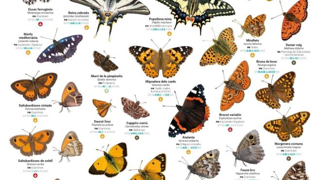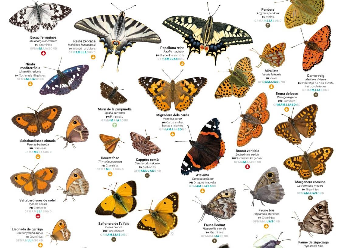 Altres espècies amb comptatges destacats han estat la papallona reina (Papilio machaon), amb 56 individus; la blanca de la col (Pieris brassicae), amb 46; la marbrada comuna (Euchloe crameri), amb 30; la marroneta de l’alzina (Satyrium esculi) i la migradora dels cards (Vanessa cardui), amb 26 individus cadascuna; la reina zebrada (Iphiclides feisthamelii), amb 24; la cleòpatra (Gonepteryx cleopatra), amb 21; i la safranera (Colias crocea), amb 18 exemplars.