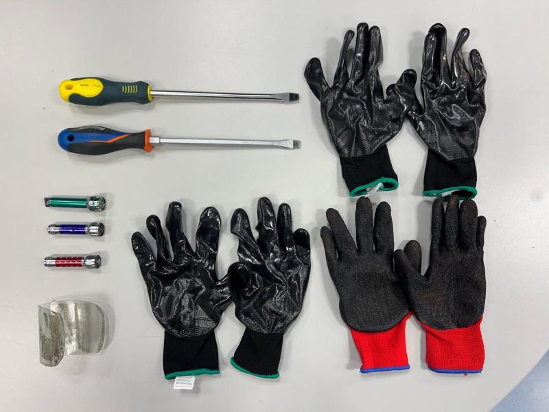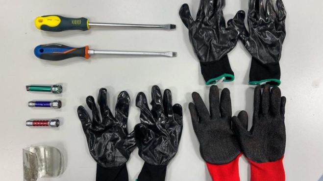 En el primer escorcoll, els van trobar tornavisos, llanternes, guants, auriculars i una motxilla. Hores més tard, cap a les 22.00 hores, els agents van veure el mateix grup d'homes amb la mateixa motxilla plena d'objectes. Els van tornar a escorcollar i, a banda de trobar-hi més tornavisos i guants, també hi portaven ordinadors portàtils. Un cop fetes les gestions pertinents, els policies van comprovar que els acabaven de sostreure d'un pis de l'Hospitalet de Llobregat i van detenir els quatre homes.