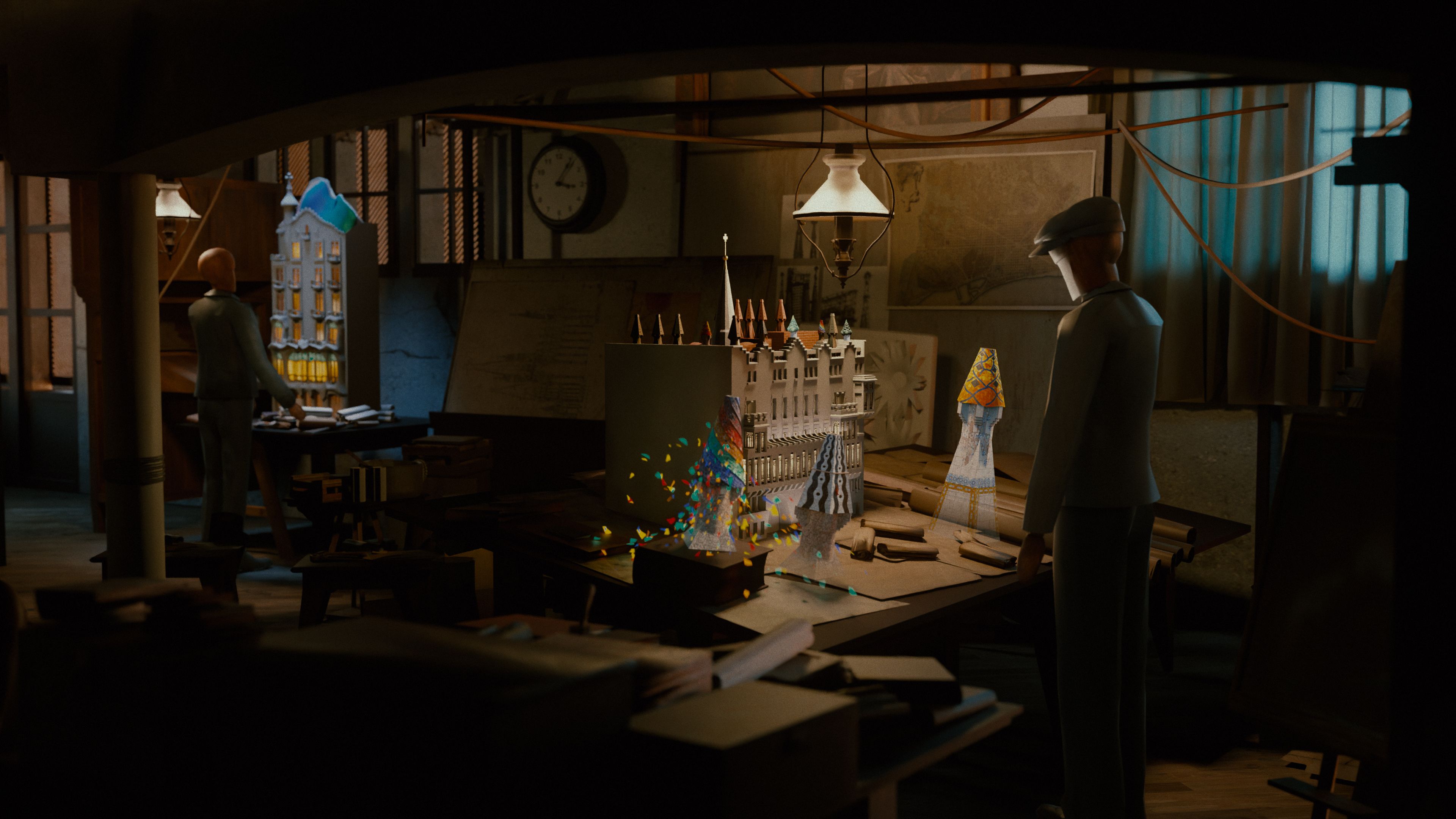 A l'experiència el públic viurà dintre del taller d'Antoni Gaudí, on es recrea l'ambient del taller original. Era el lloc on l'artista pensava amb les mans i on la idea es transformava en matèria. Aquí l'arquitectura no es dibuixava: es construïa, es penjava, s'equilibrava. Les maquetes, les eines i els materials permetien explorar formes i estructures abans que esdevinguessin edifici. El taller funcionava com un laboratori viu, on cada prova era una pregunta i cada forma, una resposta.