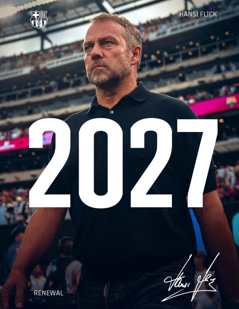 El FC Barcelona ha oficialitzat aquest dimecres la renovació del contracte de l'entrenador Hansi Flick fins al juny de 2027, després d'una temporada inaugural plena d'èxits que ha revitalitzat l'afició blaugrana. L'anunci, fet a través de les xarxes socials del club, confirma la continuïtat d'un projecte esportiu que ha retornat l'equip a la primera línia competitiva tant a Espanya com a Europa.