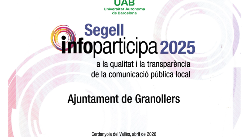 L’Ajuntament de Granollers ha tornat a ser reconegut amb el Segell Infoparticipa 2025, una certificació que avalua l’excel·lència en qualitat informativa i transparència dels portals web municipals.