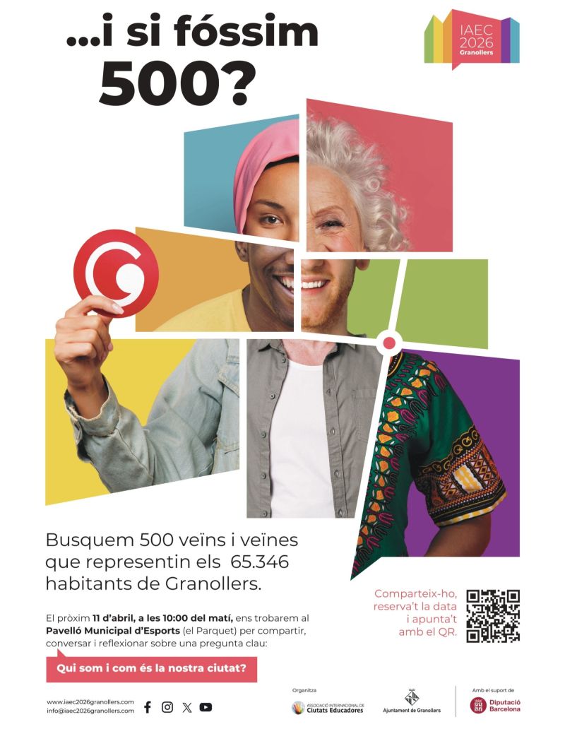 La ciutat de Granollers ha iniciat un projecte sense precedents que comptarà amb la participació activa de 500 habitants, seleccionats per reflectir la pluralitat dels seus 65.346 residents. Aquesta iniciativa, anomenada "... i si fóssim 500?", està prevista al matí de l’11 d’abril al Pavelló Municipal d'Esports del Parquet i s’emmarca dins les activitats prèvies al XVIII Congrés Internacional de Ciutats Educadores.