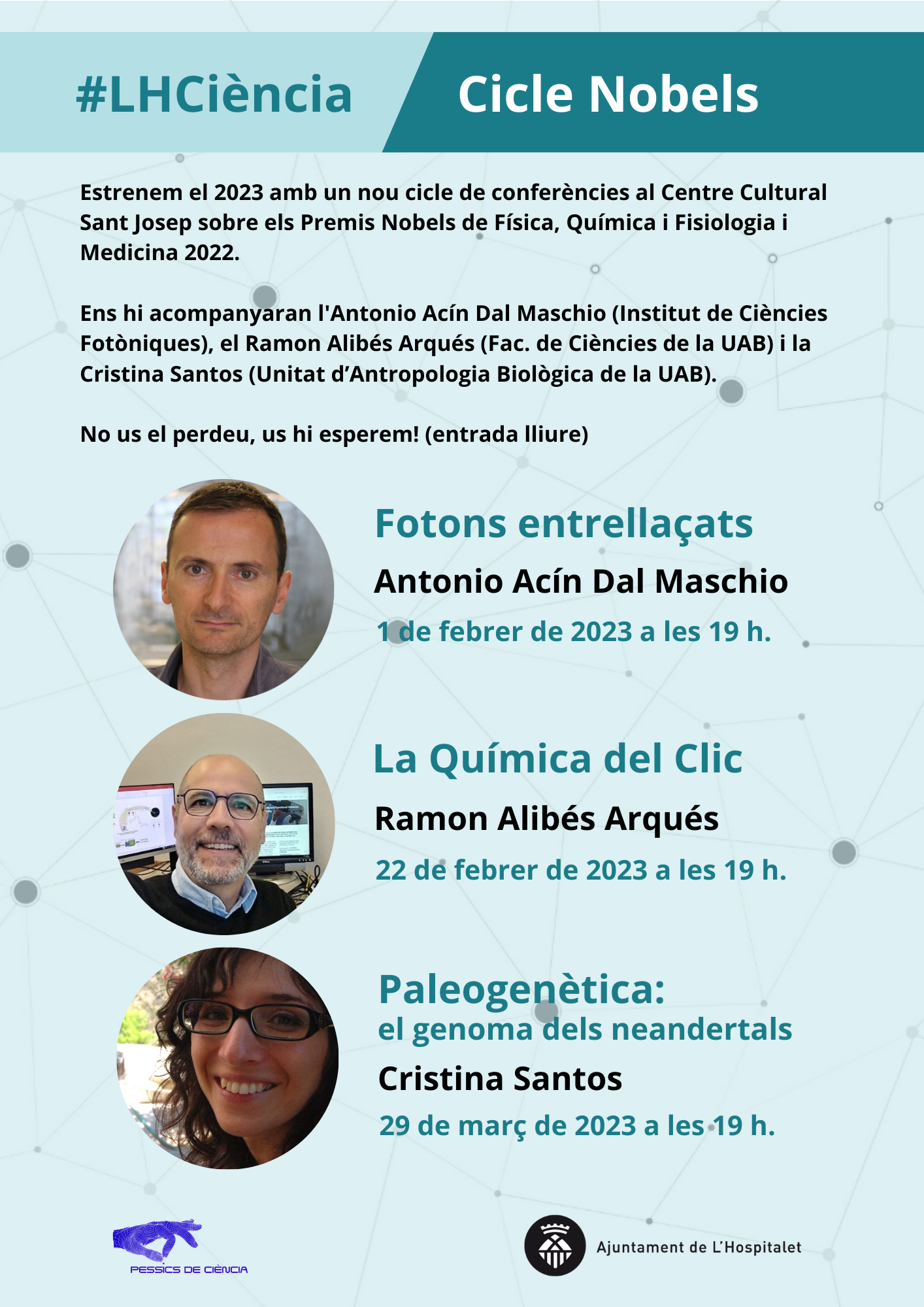 Pessics de Ciència s’estrena el 2023 amb un nou cicle de conferències sobre els Premis Nobel de Física, Química i Fisiologia i Medicina 2022, en el marc del Pla estratègic en comunicació científica de l'Hospitalet.