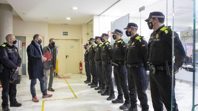 L’alcalde de Terrassa, Jordi Ballart, acompanyat del regidor de Seguretat i Protecció Civil, Xavier F. Rivero, i de l’Intendent Major, Antoni Flores, ha visitat aquest matí la seu de la Prefectura de la Policia Municipal de Terrassa. En la seva visita, l’alcalde ha saludat a alguns dels nou agents que s’han incorporat recentment al cos, després d’haver realitzat la formació de benvinguda. D’aquests, sis han aconseguit la plaça per concurs d’oposició interadministrativa i provenen d’altres cossos policials. Els tres restants han obtingut la plaça mitjançant concurs d’oposició lliure.
