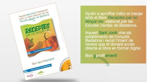 Receptes per no llençar res es publicarà en format virtual coincidint amb la diada de Sant Jordi i podrà ser consultat al web de l’Ajuntament de Badalona (www.badalona.cat). Per facilitar l’accés directe al llibre, durant la diada de Sant Jordi els establiments del grup Forquilla Badalona obsequiaran els seus clients amb un imant de nevera que conté un codi QR amb el que s’hi podrà accedir de manera directa. La idea i l’objectiu és poder tenir a mà i a la cuina el llibre i fomentar així un millor aprofitament dels aliments.