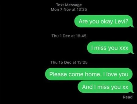 L'amic hauria contactat amb Levi Davis el passat 15 de desembre, quan feia més d'un mes que era desaparegut. Aquest missatge, qui tingui el mòbil de Levi Davis, l'ha llegit, segons The Sun.