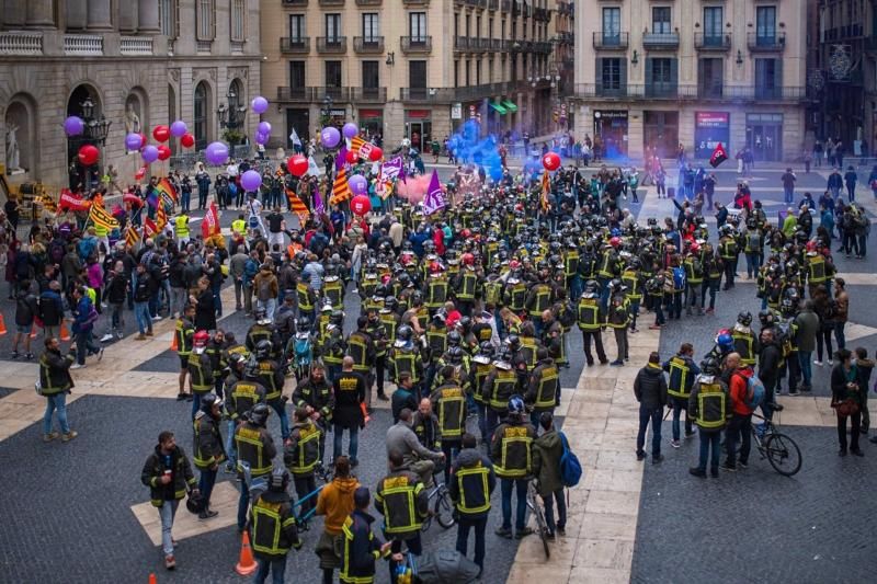 Sindicats en representació dels treballadors públics de l'Ajuntament de Barcelona han protagonitzat una sorollosa protesta a la plaça Sant Jaume, aquest dijous, per reclamar millores laborals que quedin reflectides en el conveni col·lectiu. L'acció reivindica la negociació d'unes noves condicions per a Bombers de Barcelona, la Guàrdia Urbana i altres serveis no uniformats, des dels Serveis Socials fins a les biblioteques municipals. Demanen reduccions en l'horari, més facilitats per al teletreball o les prejubilacions i uns salaris més dignes. Tanmateix, Maria Rosa Tomás, en nom de la plataforma comuna de CCOO i UGT com a sindicats majoritaris, denuncia que les converses estan sent "fàtues" i que l'Ajuntament no té una posició facilitadora.