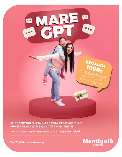 El centre comercial Montigalà de Badalona se suma a la celebració del Dia de la Mare amb una proposta pensada per sorprendre i emocionar els seus visitants. Amb motiu d’aquesta data tan especial, el centre ha posat en marxa, juntament amb altres complexos comercials, l’acció ‘Mama GPT’, un concurs digital en què se sortejaran 1.000 euros en targetes regal i en el qual es podrà participar fins al pròxim 4 de maig.