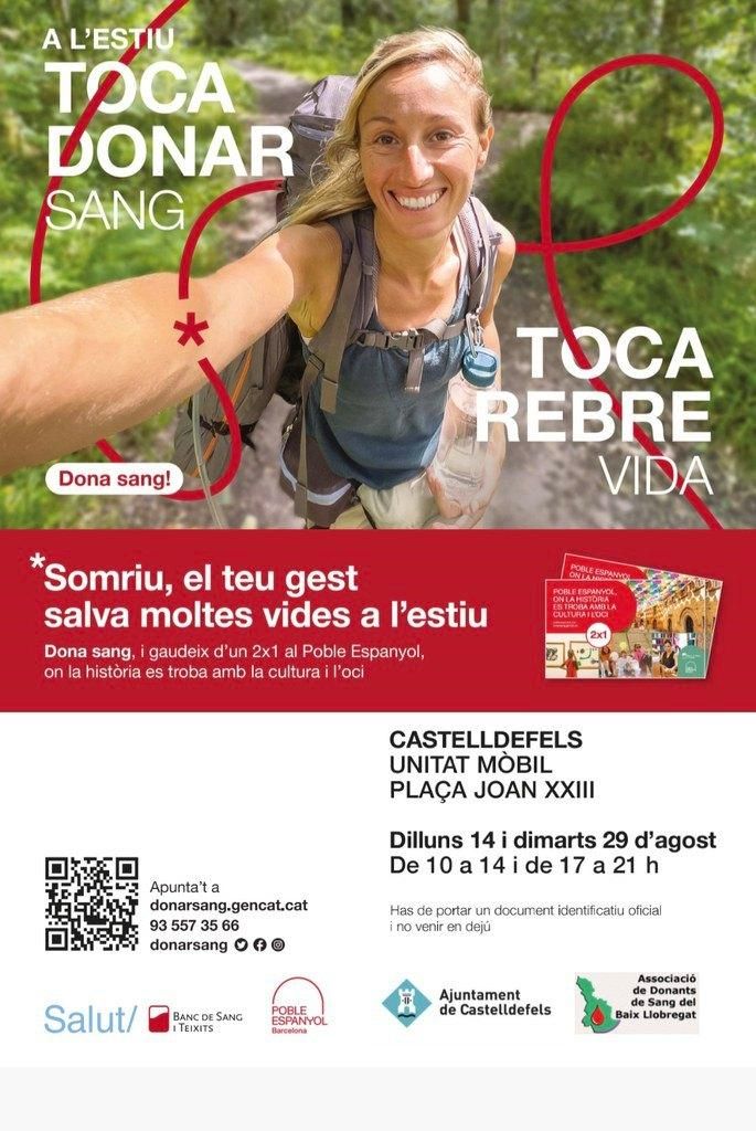 Per això, la unitat mòbil de donació del Banc de Sang i Teixits porta a terme una campanya de donació de sang a Castelldefels. La cita és la següent: