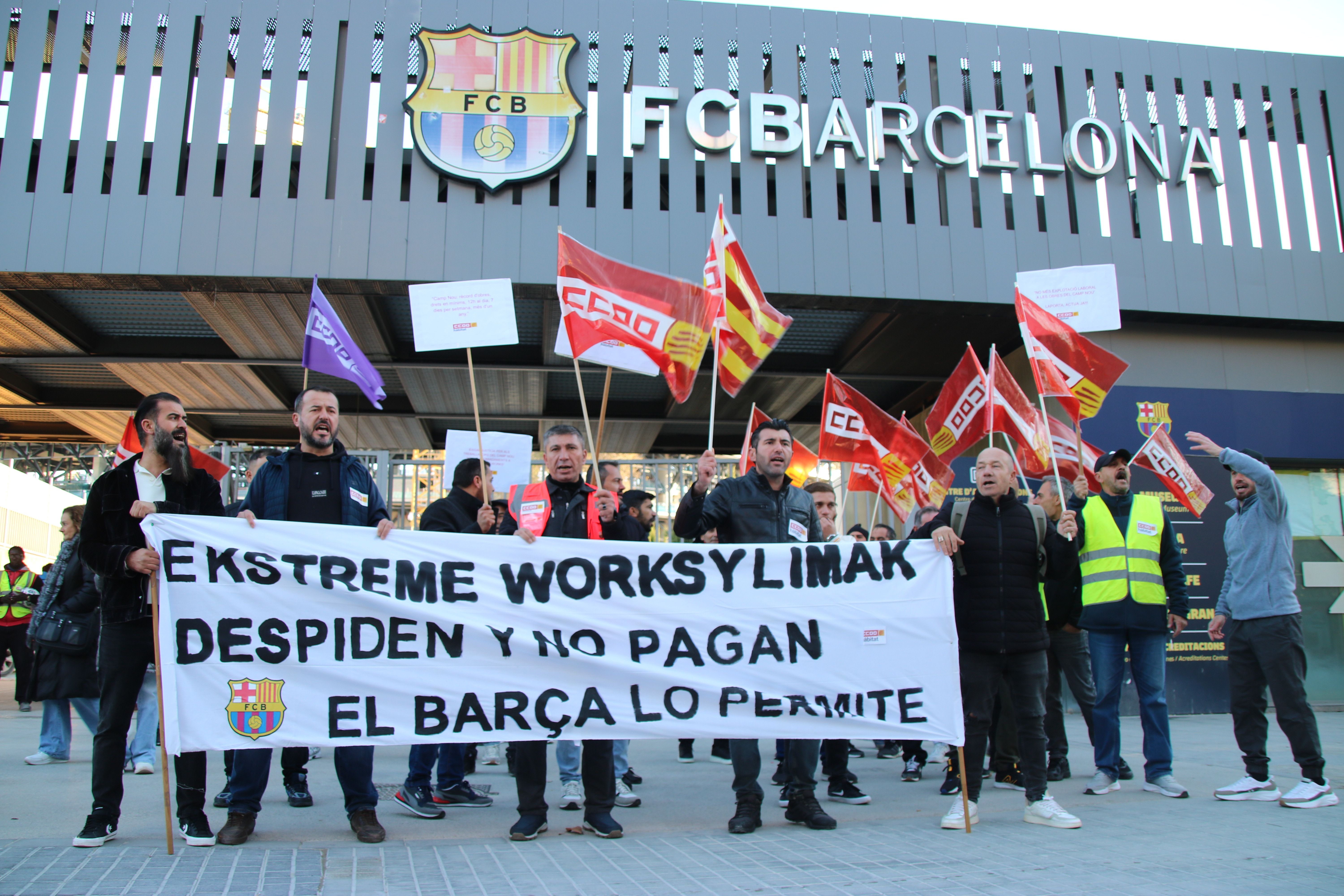 Segons el sindicat, una cinquantena de treballadors d’Ekstrem Works, subcontracta de Limak, ja han estat acomiadats fins aquest dimecres coincident amb els darrers preparatius de “l’estrena” prevista per aquest dissabte. Una trentena, la majoria persones migrades en situació irregular procedents de Turquia, s’han manifestat al voltant del complex blaugrana per denunciar la seva situació.
