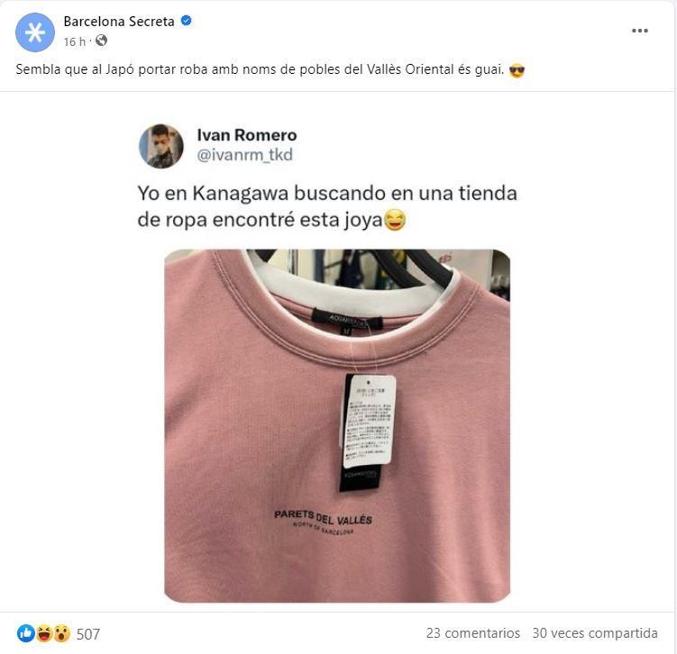 Una samarreta amb el nom de Parets del Vallès estampat que es comercialitza al Japó s’ha viralitzat a les xarxes socials durant les darreres hores. Algunes de les reaccions a la publicació més repetides pels usuaris han estat les de felicitar a la marca per haver utilitzat el topònim vallesà a la seva col·lecció de roba i altres també han afirmat el seu interès per adquirir-la.