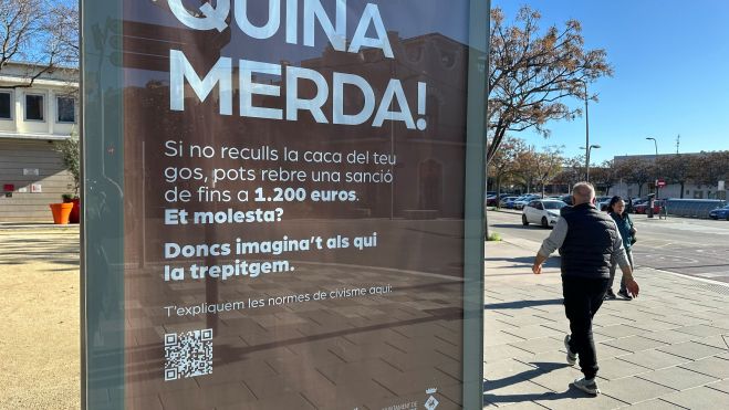La publicitat té una gràfica senzilla en què el principal focus és el text. El 'claim' “quina merda” juga amb el doble sentit de l’expressió, emfatitzant que la campanya parla d’excrements de gos, però també que és “una merda” que “si no reculls la caca del teu gos, pots rebre una sanció de fins a 1.200 euros”. El text afegeix “Et molesta? Doncs imagina’t als qui la trepitgem”, de manera que apel·la també a aquelles persones que pateixen i han d’assumir les conseqüències de les accions dels altres.