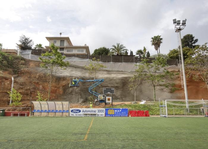 D’altra banda, els treballs d’estabilització del talús han finalitzat amb èxit. El desplaçament del terreny de joc es farà amb la renovació de la gespa a partir de mitjan juliol.