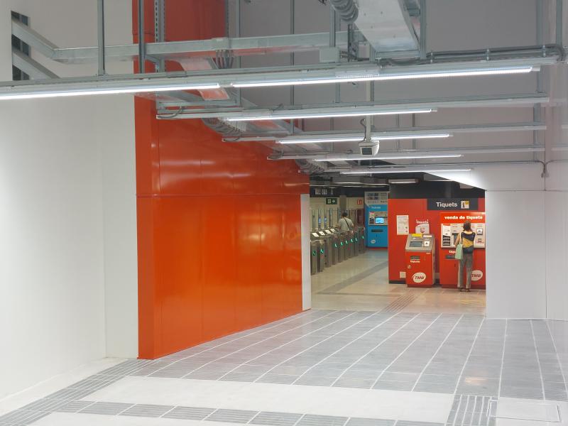 Els treballs realitzats aquests darrers mesos han permès ampliar la capacitat del passadís existent que va des de la línia de peatge a la sortida del carrer Badajoz i millorar la seva funcionalitat. Abans la zona estava limitada per un estret corredor i per l’existència a mig recorregut d’unes escales de baixada i pujada, ara substituïdes per una rampa que millora l’accessibilitat.