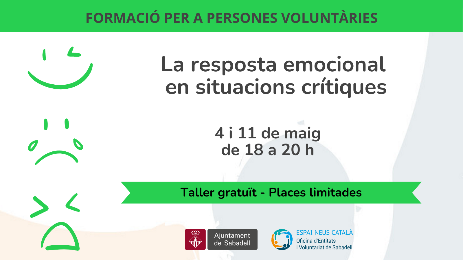 "La resposta emocional en situacions crítiques", taller adreçat a persones voluntàries