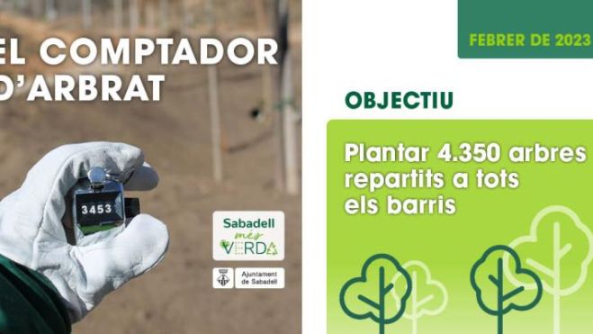 La xifra de plantació de nous arbres es pot seguir en un comptador gegant que està instal·lat a la Fira Sabadell des de febrer del 2022. El comptador es va iniciar amb la xifra de 1.192, que són els exemplars que s’havien plantat en els darrers dos anys i mig i, a partir d’aquí, s’actualitza periòdicament a mesura que es van realitzant plantacions.