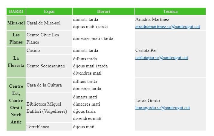 El nou Servei d’Acció Comunitària està format per una coordinadora i tres tècniques que treballaran una a la Floresta i les Planes, una a Mira-sol i la tercera als barris del centre.