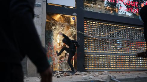 A la Plaça Sant Jaume, un altre grup ha trencat els vidres d’un local de restauració d’una multinacional i hi ha escrit missatges de protesta, com “Tancat per genocidi”. En el carrer Ferran, també s’han registrat pintades sobre un vehicle dels Mossos d’Esquadra estacionat, aprofitant que en aquell moment no hi havia agents presents.