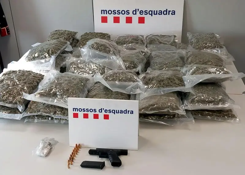 En total, distribuïts en paquets, es van localitzar més 50kg de marihuana i 99gr d’haixix. El preu aproximat al mercat de tota aquesta droga seria superior als 350.000 euros. A més, en una habitació els agents van trobar una pistola municionada.