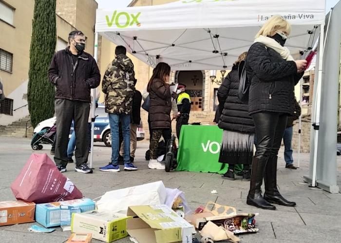 Les tensions s'han produït quan diversos grups antifeixistes s'han presentat al lloc on hi havia la carpa per increpar als militants i simpatitzants de Vox. A més de cridar "fora, feixistes, dels nostres barris", els grups contraris al partit d'extrema dreta han llençat ous i brossa contra la carpa. A més, segons denuncien algunes militants dels grups antifeixistes, s'ha pogut veure alguns militants de Vox fer la salutació feixista.