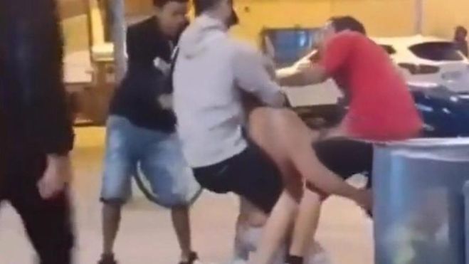 Les persones agredeixen a l'home davant d'un bar sense importar els testimonis.