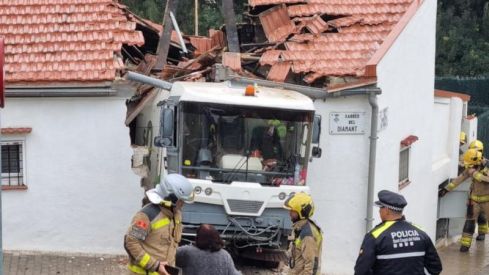 Un vehicle del servei municipal de neteja s'estavella contra una casa de Sant Cugat el Vallès