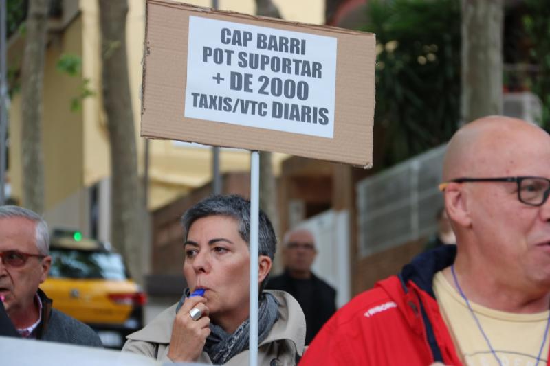 Mig centenar de veïns del barri de la Salut de Barcelona han sortit al carrer aquest divendres a la tarda per denunciar la massificació de taxis que hi ha a la zona degut a la proximitat amb el Park Güell.