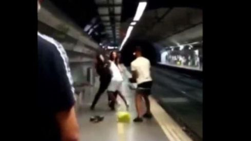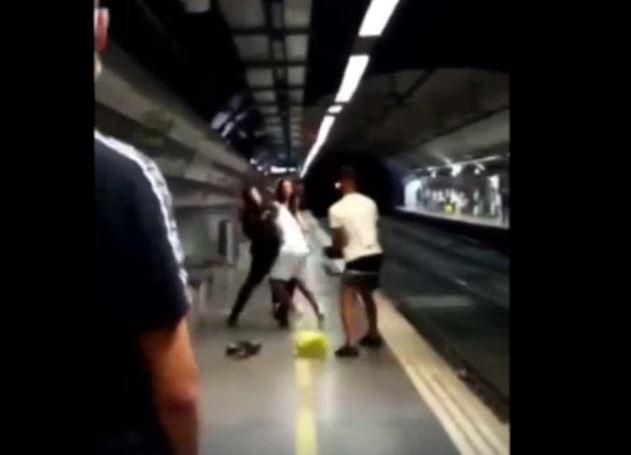 Es produeix una baralla i per intentar escapar es tiren a les vies del tren amb l'objectiu d'armar-se amb pedres i llançar-les.La batussa s'inicia entre dos joves i una parella. Una cinquena persona es troba a terra, de 'cuclillas', sense intervenir en la baralla, però pel que sembla malferit.Un noi reté a un dels presumptes delinqüents passant-li el braç pel coll, la qual cosa fa reaccionar al company, que és el que es llança a les vies del tren a recollir qualsevol objecte que pugui tirar-li. De nou en l'andana, li llança una pedra al noi mentre l'altra jove li crida: "Ni se t'acudeixi!".VÍDEO: Baralla a pedrades en una estació de tren de Barcelona