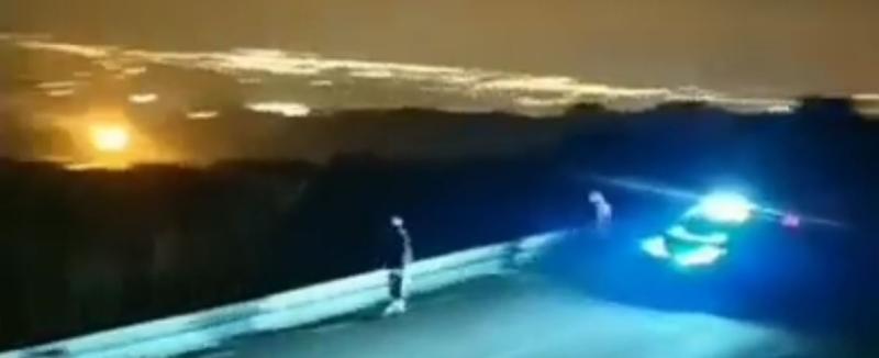 En quant veuen les llums blaves, tracten de fugir i esquivar al cotxe.