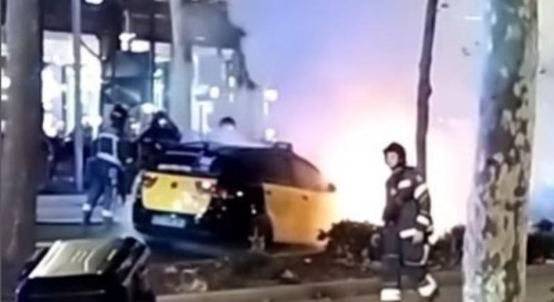 Ara, les imatges s'han fet virals a les xarxes socials. I és que no és gens habitual veure un icònic taxi de Barcelona envoltant de foc.